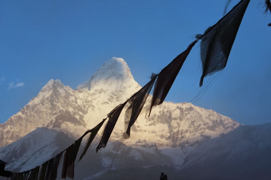 Lentamente el día le dio paso a la noche y el “Ama Dablam” (madre de gran corazón) tímidamente nos daba la bienvenida entre un suave manto de nubes.